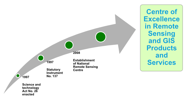 The National Remote Sensing Centre (NRSC) was established through the issuance of Statutory Instrument No. 137 of 1999 of the Science and Technology Act (No. 26 of 1997). The idea of setting up the NRSC was mooted at an international conference hosted by the then Ministry of Science, Technology and Vocational Training (MSTVT) in 1997.